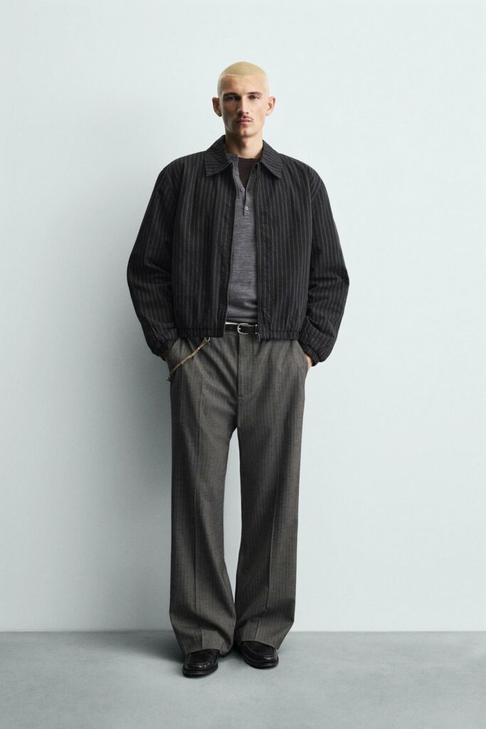 9. Veste à rayure et pantalon droit