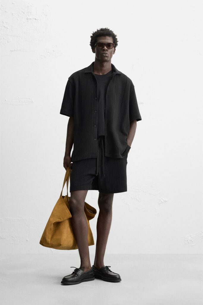 L’un des looks les plus tendance de l’été : un ensemble tricoté noir, short et chemise assortie. Chic, minimal et incroyablement confortable.